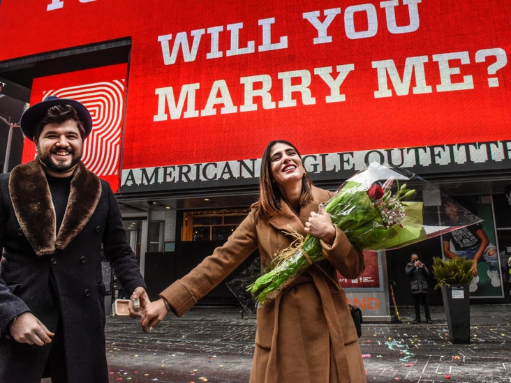 14 февраля. Язин Узун и Туба Себи празднуют помолвку на Таймс-сквер. Эта пара участвовала в большом проекте, приуроченном к Дню святого Валентина, в рамках которого можно было сделать предложение своей второй половинке на самой большой площади Нью-Йорка.
