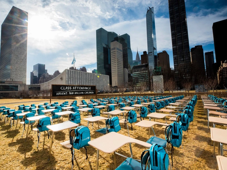 3 марта. ЮНИСЕФ представляет арт-объект «Пандемический класс», призванный привлечь внимание общественности к чрезвычайной ситуации в области образования, вызванной пандемией. «Пандемический класс — это типовой класс, состоящий из 168 пустых парт, — пояснила исполнительный директор ЮНИСЕФ Генриетта Фор. — Каждое место представляет один миллион детей, живущих в странах, где школы были почти полностью закрыты с начала карантина. За каждым стулом висит пустой рюкзак — символ нереализованного детского потенциала. Мы не должны молчать и бездействовать, когда будущее наших детей находится под угрозой».