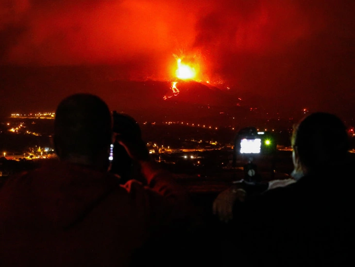 22 сентября. Жители Канарских островов снимают на камеры извержение вулкана Кумбре-Вьеха. Он начал извергаться три дня назад и уже уничтожил более 1000 строений.