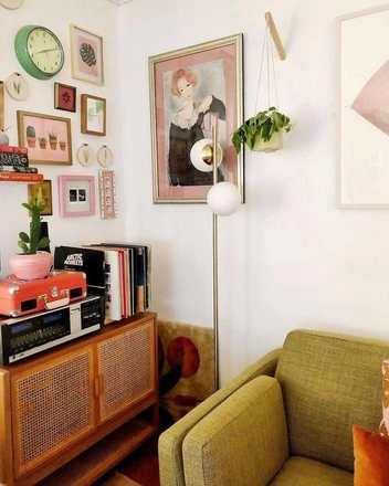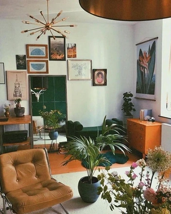 Цветовые акценты: Яркие, насыщенные оттенки, такие как горчичный, изумрудный, бордовый, насыщенный синий и пастельные тона, делают интерьер выразительным.