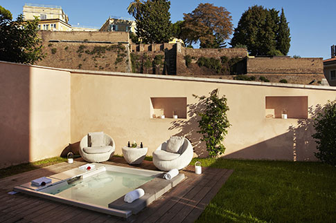 На месте отеля Gran Melia Rome (melia.com) была когда-то вилла Агриппины – мамы императора Нерона. Этот факт выяснился совершенно неожиданно, на этапе закладки фундамента, и стал определяющим в концепции отеля. Решено было построить роскошь в чистом виде. Правда, по сравнению с нероновской пышностью это роскошь-невидимка, роскошь-призрак, присутствие которого, однако, ощущается в каждой мелочи – от дорогих портьер из натуральной тафты до оснащения номеров, достойного музея передовых технологий. В холлах выставили найденные при раскопках артефакты, так что теперь отель имеет полное право называться не только курортом с собственным садом, тремя бассейнами, каскадным фонтаном и террасой на крыше, но и музеем. При этом он старается внешне не выделяться на фоне соседей – замка Святого Ангела и Собора Святого Петра, купол которого виден из номеров.