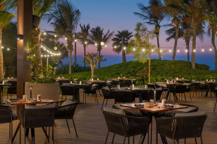 Как ценитель азиатской кухни, из всех ресторанов Bluewaters я особенно рекомендую Demon Duck, отмеченный гидом Мишлен. И это вполне ожидаемо, учитывая, что заведение создано знаменитым шеф-поваром Элвином Люнгом. Сюда лучше приходить вечером — атмосфера располагает к нарядным образам и неспешному ужину, поэтому и свой день рождения я отмечал именно здесь. Коронное блюдо ресторана, конечно же, утка по-пекински, поэтому ее я выделю первой в своем списке must-try. Также, если будете здесь, советую попробовать булочки бао и фирменную шаурму с ананасом, это очень вкусно. Что касается интерьера ресторана, он выглядит фотогенично: повсюду яркие граффити, объекты современного искусства, а если выйти на веранду в сад, то можно вдруг обнаружить пруд с резиновыми уточками — символично.