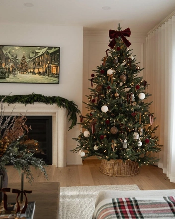 Мода на эстетику coquette не прошла мимо даже праздничного декора. Поэтому в этом году одним из трендовых елочных украшений стали банты. Это могут быть небольшие бантики на ветках или один внушительных размеров, закрепленный на верхней части дерева — любой из этих вариантов будет смотреться стильно и необычно. К тому же, его легко повторить. Достаточно лишь запастись длинной атласной лентой, ножницами и парой часов свободного времени.
