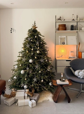 Кто сказал, что золото и серебро вместе — это против правил? Напротив, это одно из самых модных сочетаний елочных игрушек в этом году. Чтобы его повторить, вы можете использовать однотонные шарики разного размера или, напротив, посвятить золотым оттенкам одни формы, а серебряным — другие. Такой метод дает большие возможности для экспериментов, но главное в нем то, что он будет выглядеть по-настоящему стильно без особых затрат: достаточно лишь взять нужные цвета игрушек из прошлогодних наборов.