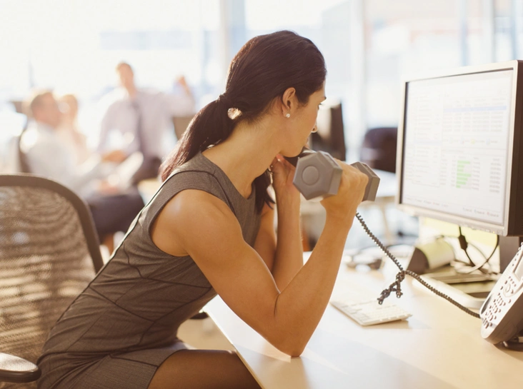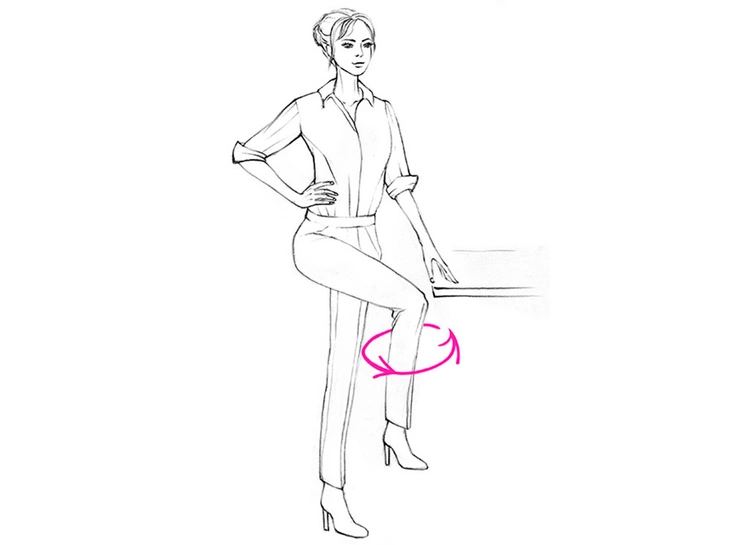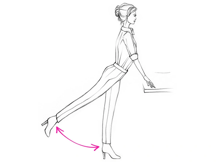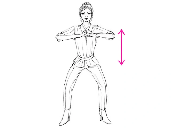 Приседания благотворно действуют на тазобедренные суставы. Конечно, офисная одежда не позволяет полноценно приседать, особенно если речь идет о юбке. Однако приседания могут быть низкоамплитудные, небольшие. Локти при этом должны смотреть в стороны, а кисти рук — находиться на уровне груди. Выполните 10 приседаний, чтобы в середине рабочего дня заставить застоявшуюся кровь бежать быстрее.