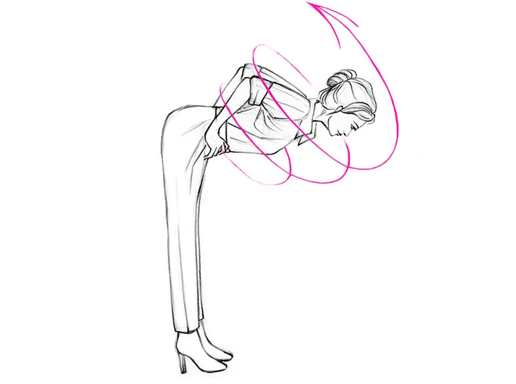 Заключительное упражнение позволяет размять позвоночник ─ основу основ хорошего самочувствия. Ноги поставьте на ширине плеч, руки ─ на пояс. Начните вращать корпус, как бы медленно «поднимаясь» по спирали от поясницы к груди. Такое упражнение усиляет кровоток и приводит все тело в тонус.