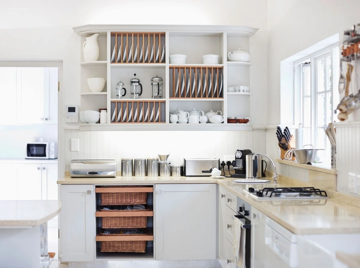 В прошлом, когда рынок кухонных гарнитуров не мог похвастаться особым разнообразием, главными инструментами самовыражения были различные аксессуары: хрусталь (который все равно не использовался по назначению, так как был хрупким и непрактичным), торшеры, статуэтки, тумбочки, вазы. Чтобы выделиться сейчас, все это больше не нужно. Ваша кухня и так едва ли будет похожа на соседскую, ведь при ее покупке вам, скорее всего, предложат на выбор десяток-другой фасадов и столько же видов встраиваемой техники, столешниц и подсветки. Поэтому лучше расстаться со всеми нефункциональными вещами, «польза» которых только в том, что они служат неизменным местом встречи для частичек пыли. Но если некоторые из этих предметов особенно дороги вашему сердцу или являются вашими заслуженными трофеями, рекомендуем убрать их в шкаф или спрятать за мебельными жалюзи.