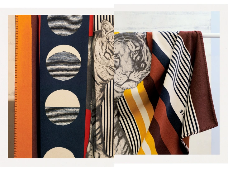 Королевский тигр, обнаруженный в архивах Images d'Épinal, возродился на рисунке Джанпаоло Паньи и впоследствии был перенесен на плед. Отдельной «изюминкой» изделия является контраст между грозной силой величественного животного из семейства кошачьих и бархатистой текстурой кашемира.