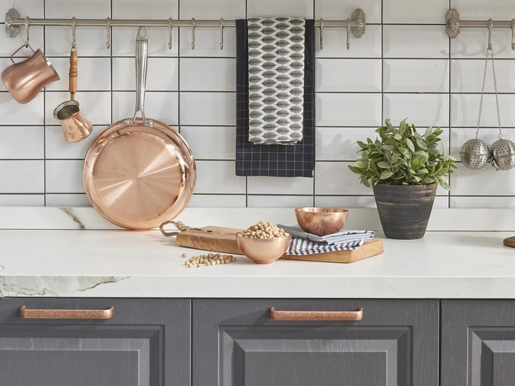 Латунь в таких деталях интерьера, как ручки, светильники, краны, выключатели, придает пространству изыск и особую атмосферу. Этот материал устойчив к коррозии и требует минимального ухода, а значит очень функционален. Особенно стильно смотрится сочетание латуни с современными формами и нейтральной цветовой гаммой (читайте также: Рабочие методы: как отмыть противень от жира и пригоревшей еды — проверенные лайфхаки).