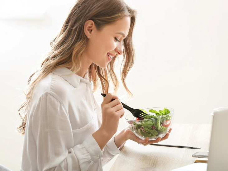 Постарайтесь продумывать сбалансированное меню на день заранее. Так у вас будет больше шансов избежать спонтанных вредных перекусов или картошки фри на обед. Если вы берете еду с собой в офис — выделите больше времени с утра для готовки, если привыкли питаться в кафе — продумайте, куда отправитесь на обед и ужин. Если же вы работаете из дома — устраните так называемую триггерную пищу: все, из-за чего у вас может случиться срыв и переедание. Печенье, шоколад, снеки — лучше не держать их дома в большом количестве, а покупать отдельными порциями на один раз.