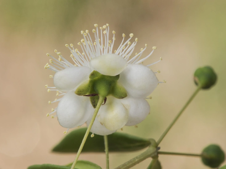 Мирт — отличный натуральный ароматизатор. Его маленькие листья источают неповторимый запах, поэтому поместите их в хорошо дренированный песчаный компост и поставьте у входной двери, заменяя диффузор. Держите мирт подальше от пронизывающего ветра и сырости. Сорт «Тарентина» более компактный, а «Вариегата» отличается эффектными серебристыми листьями, которые хорошо смотрятся с розоватыми кремовыми цветами. Маленькие кремовые цветы мирта с пушистыми золотыми тычинками, розоватыми стеблями и сине-черными ягодами определенно украсят ваш интерьер в период цветения. Но это далеко не все преимущества этого растения.