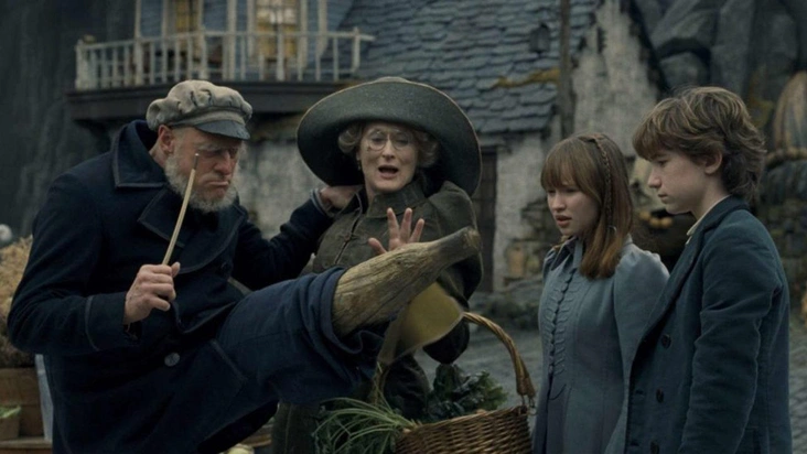 Картина для семейного просмотра, основанная на серии книг писателя Дэниела Хэндлера, пишущего под псевдонимом Лемони Сникет. Это история о милых и сообразительных детях, на которых внезапно обрушиваются несчастья. Потеряв в ужасном пожаре родной дом и родителей, они попадают на попечение к графу Олафу. Вот только оказывается, что их опекун совсем не из добрых намерений согласился их растить, а из-за коварных планов завладеть огромным наследством бедных детишек. Мерил Стрип в этой экранизации досталась роль второго плана, однако она с ней справилась не менее блистательно, чем Джим Керри — с образом злобного графа. Ее героиня — трогательная и доверчивая вдова, живущая в шатком доме у самого обрыва. Она панически боится самых обычных вещей, например, подходить к холодильнику или дотрагиваться до стеклянных дверных ручек. Ее иррациональные страхи абсурдны, но в глазах у героини Мерил Стрип часто проскальзывает такой неподдельный ужас даже при виде чего-то крайне заурядного, что хочется сопереживать даже этой немного сумасшедшей старушке. Еще одна необычная роль в копилке замечательной актрисы.