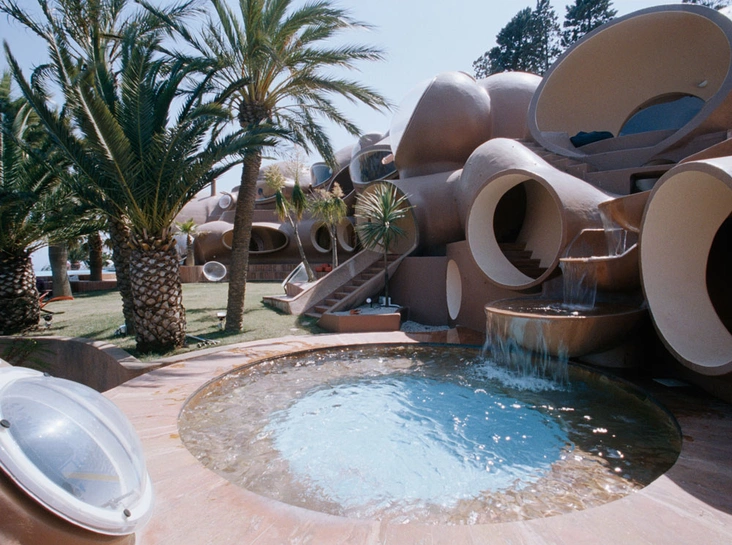 Образец футуризма и авангарда, дом-пузырь стал собственностью модельера Пьера Кардена в 1991 году. Удивительное жилище построено возле Канн, на скале у средиземноморского побережья. По задумке архитектора оно имитирует пещеры первобытных людей. Облицовка выполнена из бетона с напылением, по крышам каскадом спускаются бассейны.