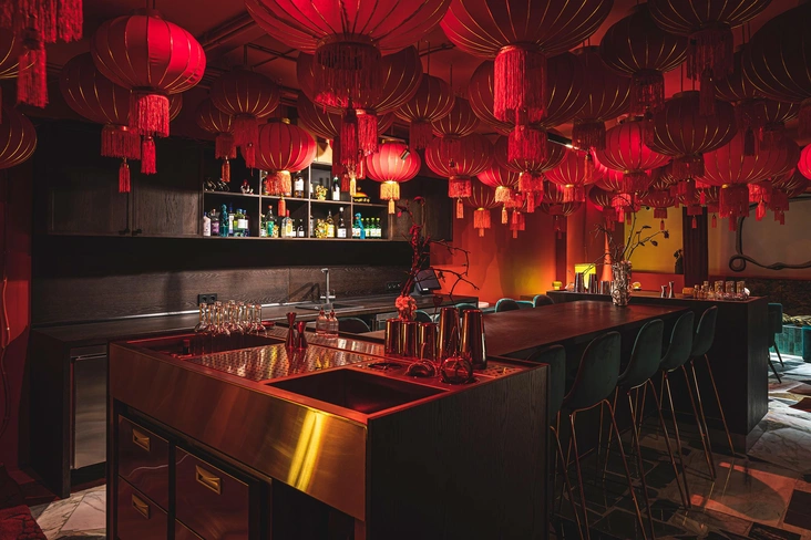 Коктейльная карта в стиле шинуазри предлагает 8 авторских коктейлей и несколько комфорт-дринкс, которые можно заказать, если хочется классики. В каждом напитке зашифрована отсылка к Китаю. Открытие Laowai Market & Bar состоялось в коллаборации с петербургской оптикой P.Y.E и футуристичным фэшн-брендом FAKOSHIMA, создавших коллекцию очков METAL LOTUS. По мотивам коллекции выпущена специальная линейка из 5 коктейлей, вдохновленных моделями очков в духе киберпанка. Попробовать коктейли Laowai Market & Bar х P.Y.E х FAKOSHIMA можно в баре в течение месяца.