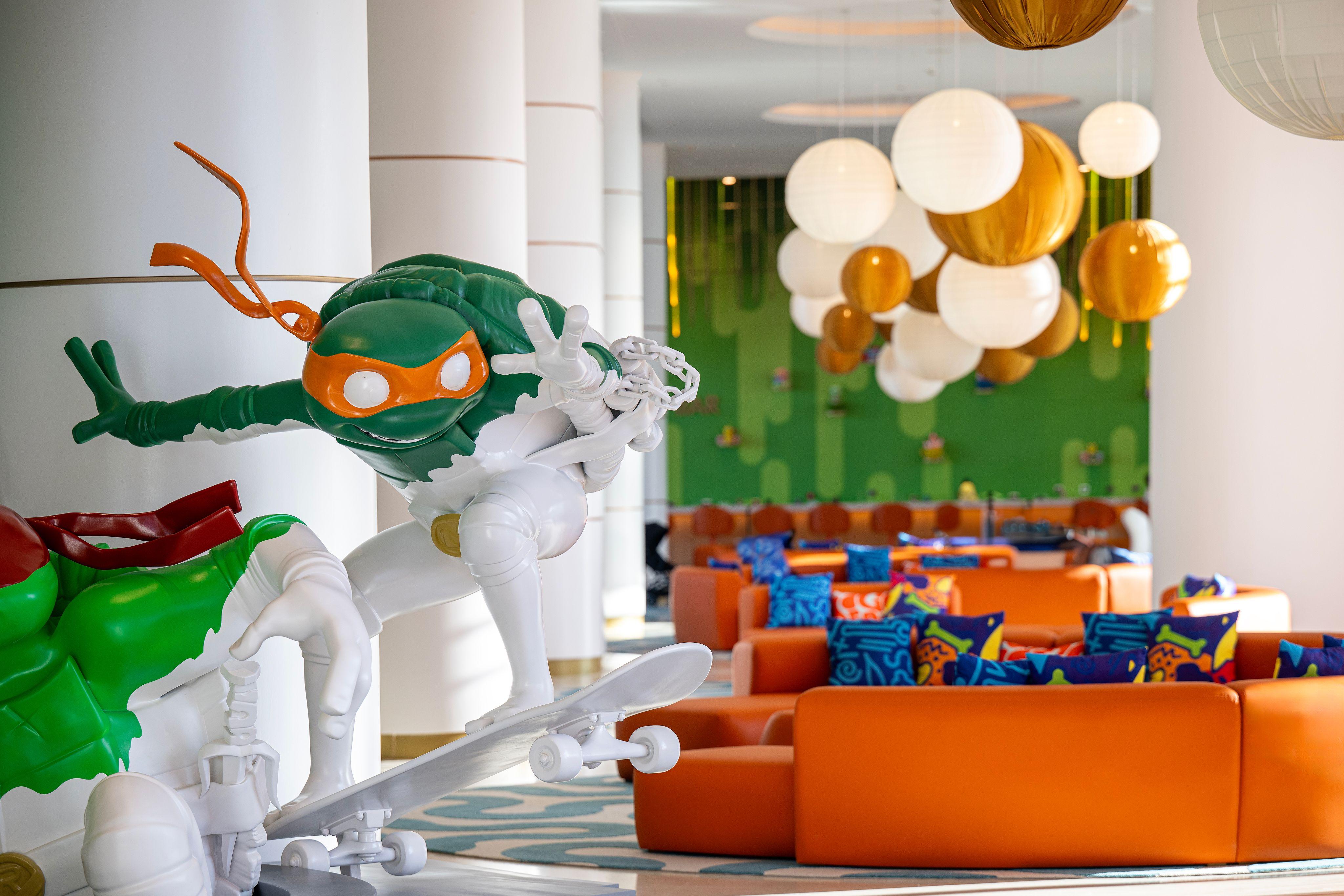 Невооруженным взглядом видно, что концепция отеля направлена на отдых с детьми. Все начинается с дизайна самого отеля — повсюду мы видим разноцветные стены, украшенные героями мультфильмов, а прямо на входе в отель стол с множеством мармелада и других сладостей. Ощущение сказки не прекращается и по прибытии в номер — каждая комната посвящена героям одного из мультфильмов: «Даша путешественница», «Спанч Боб», «Черепашки-ниндзя», «Звездный путь» или «Щенячий патруль».