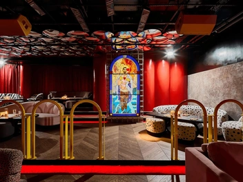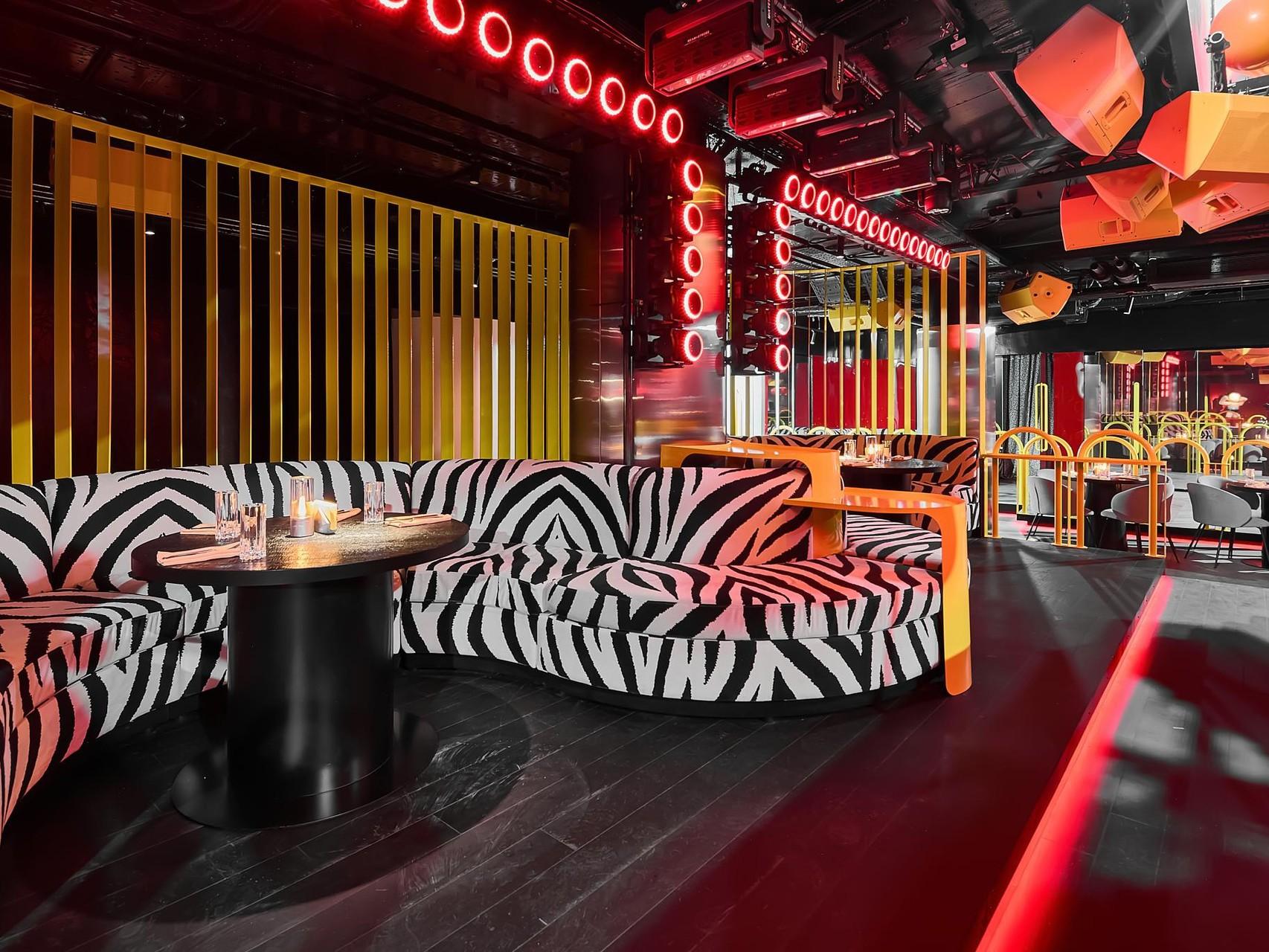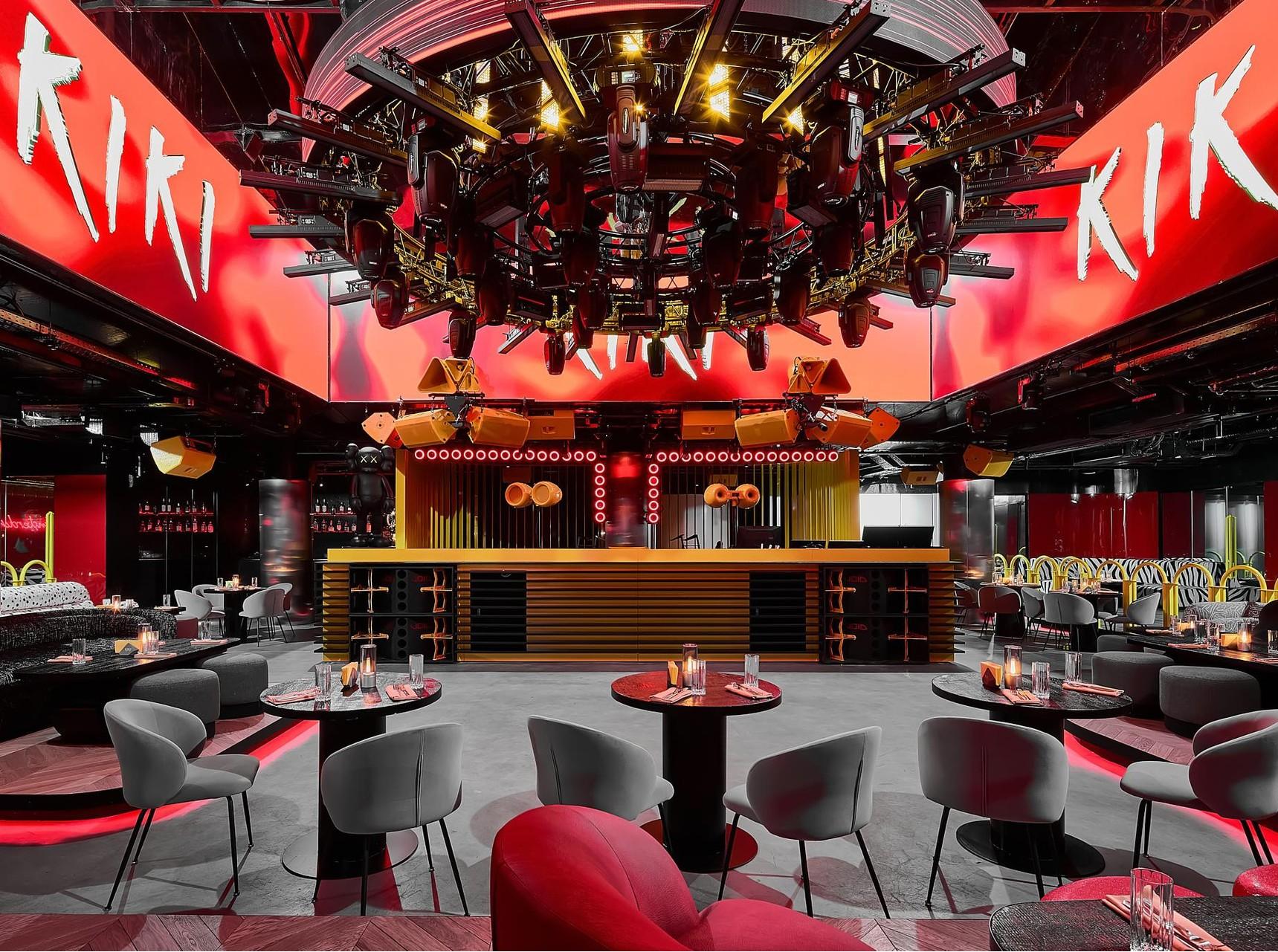 В KiKi Event Dom пространство делится не на залы, а на сценарии. VIP-зоны здесь существуют как самостоятельные интерьерные миры, каждый со своей атмосферой и настроением. Pink Room интерпретирует эстетику гламура нулевых в более сдержанном и изящном ключе, Shibuya Room вдохновлен японской анимацией и неоновой динамикой мегаполиса, Crystal Room строится на сочетании желтого цвета и отражающих поверхностей, а St. Tropez Room передает курортную расслабленность с элегантными акцентами. Каждая зона рассчитана примерно на 30 гостей и дополнена отдельным лаунжем с видом на основной зал.
