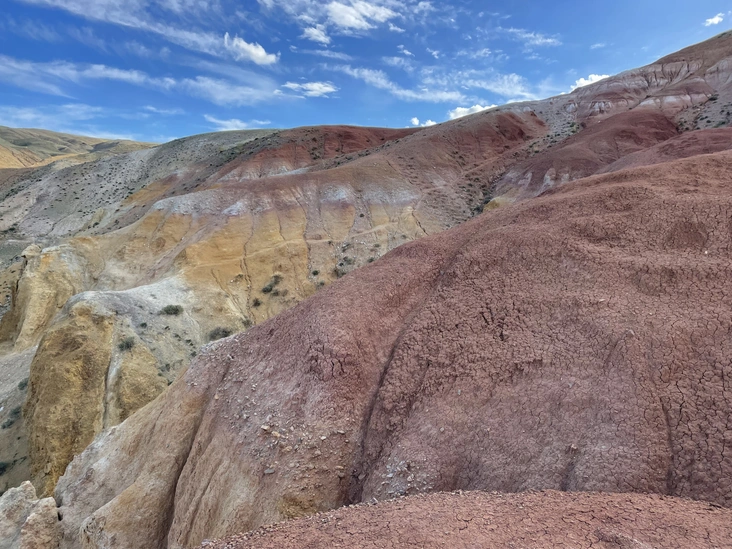 Алтайский «Марс» покорит вас сразу — попав туда, сложно поверить, что ты все еще находишься на родной планете. Разноцветная глина создает уникальную палитру на горах урочища — от белого и песочного до всех оттенков красного и даже фиолетового. Бродить по «марсианским» впадинам и холмам можно очень долго, поэтому смело закладывайте на изучение и обход космической локации целый день.
