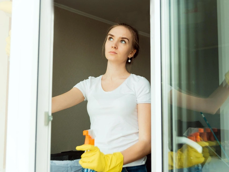 Первый шаг к очистке труднодоступных поверхностей — выбрать способ доступа к каждому окну, будь то мытье со скребком или обычной шваброй. После того, как определитесь с методом уборки, соберите все необходимые бытовые принадлежности, чтобы в процессе ни в коем случае не отвлекаться от мытья и не прерывать уборку посередине. Например, вам может понадобиться магазинное химическое средство для мытья стекол. Или самодельная смесь для тех же целей. А может быть, губка или мягкая щетка для удаления сильно присохшей грязи.
