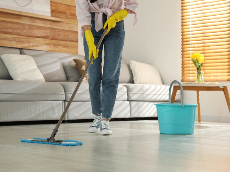Как только вы протерли поверхности от пыли — приступайте к самому нижнему уровню. Чтобы не ограничивать все поле своих передвижений, разделите квартиру на несколько зон: например, объедините ванную и кухню (тем более, оба эти участка уже были обработаны). Поднимите все вещи с пола и помойте его: пока он будет высыхать, переходите в спальню и гостиную.