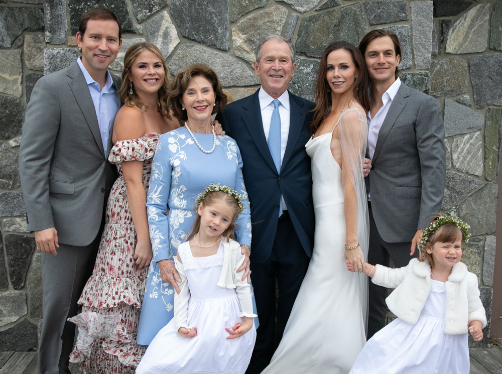 Барбара и Крейг позируют вместе с Генри Хагером, Дженной Буш-Хагер, Лорой Буш, Милой Хагер, Джорджем Бушем-мл. и Поппи Хагер (слева направо).