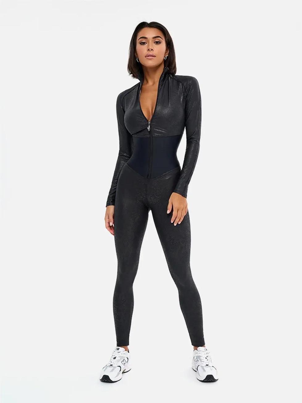 Комбинезон выполнен из итальянкой ткани Carvico c использованием английских нитей. Модель с высоким поясом визуально сужает талию, подчеркивает изгибы тела, облегая, как вторая кожа, улучшает силуэт и делает его изящным.