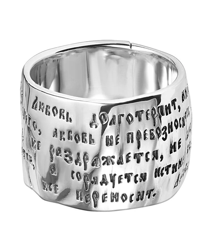 Женщину-Льва легко покорить подарком со смыслом. А если он будет еще и про любовь — эффект «вау» обеспечен. На серебряном кольце от бренда LEVASHOVA ELAGINA выгравированы слова Первого послания к Коринфянам из Библии. Объемный аксессуар станет не просто украшением для важных поводов, а особенным предметом в шкатулке, который поможет напомнить о вечном в любой день.