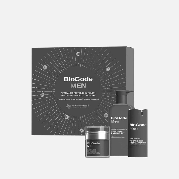 Подарочный набор для мужчин косметический для ухода за кожей лица от бренда BioCode — это коллекция эффективных средств, разработанных совместно с Институтом пластической хирургии и косметологии. В состав набора входят гель для умывания лица, крем для лица и крем для век — незаменимые средства для тех, кто ценит высокий уровень ухода за собой и стремится к комфорту во всем.