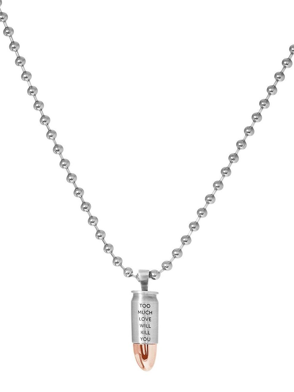 Надпись на подвеске: «Too much love will kill you».
