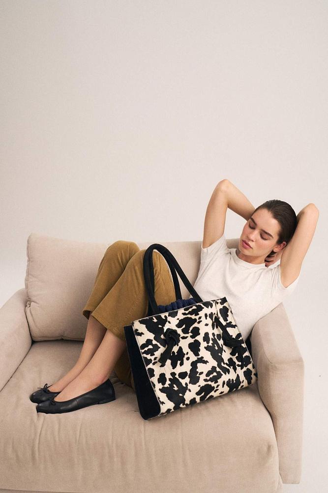 Любимая и самая удобная модель бренда теперь доступна и в нетривиальном принте. Сумка выполнена из натурального ворса с тиснением и нитками в тон, ручки регулируются на узлах. Идеальный вариант вместительного айтема, который подойдет и для рабочих будней, и для культурных выходных.