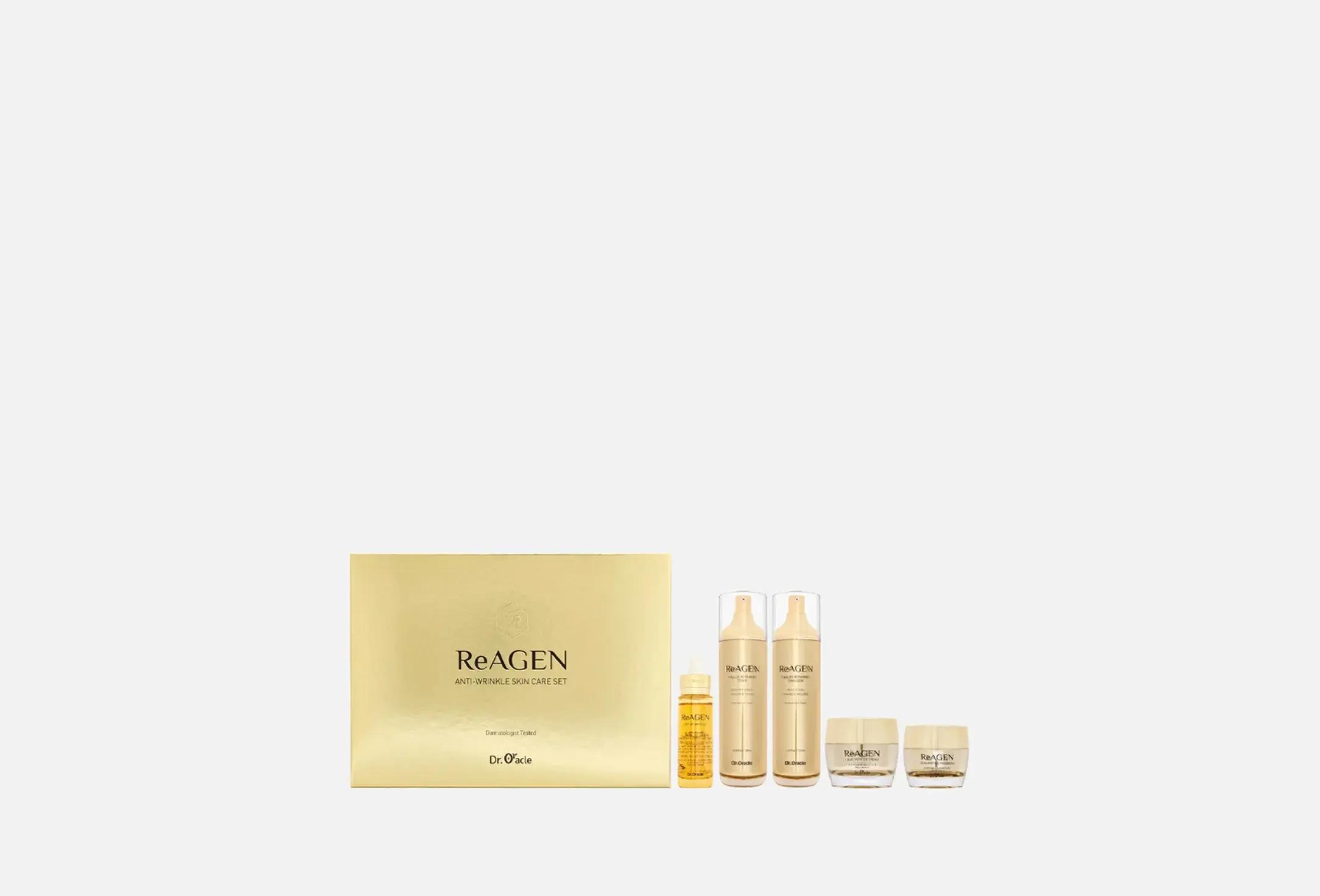 Набор для идеального тона и упругости кожи. В составе пять средств с пептидами, коллагеном, гиалуроновой кислотой, стволовыми клетками эдельвейса и биозолотом. Премиальный уход для ровного, сияющего и упругого лица.