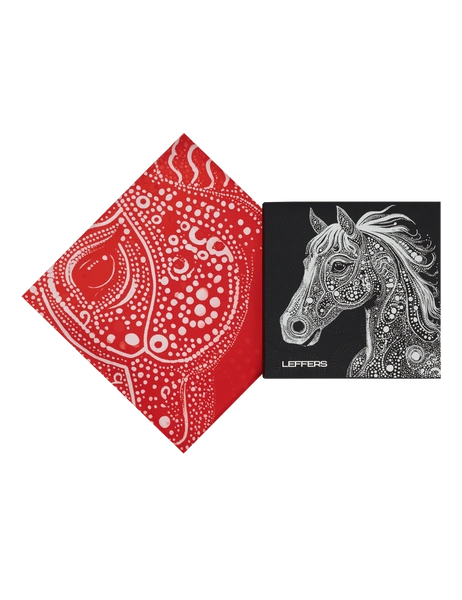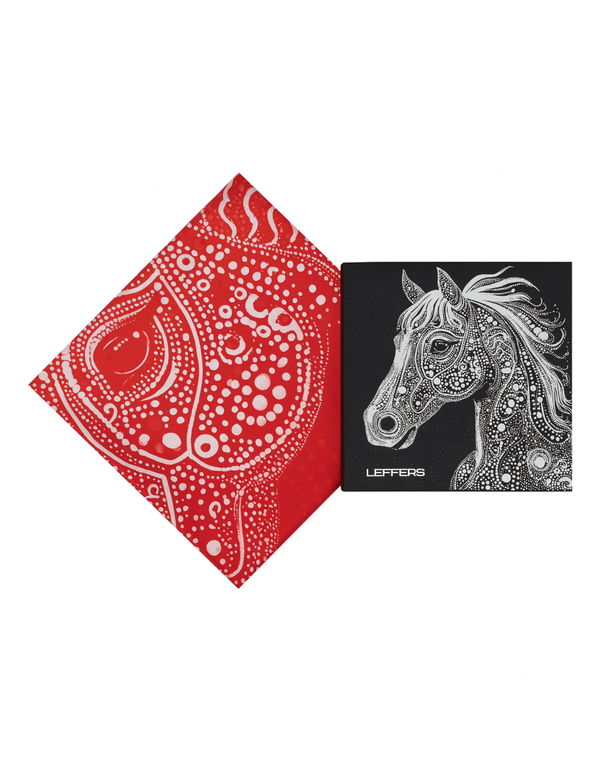 В этом шелковом платке образ лошади раскрывается в горячем алом цвете — оттенке, который неразрывно связан с энергией жизни и движением вперед. Красный всегда символизировал силу воли, страсть и способность действовать — которые так присущи женщинам-Тельцам.