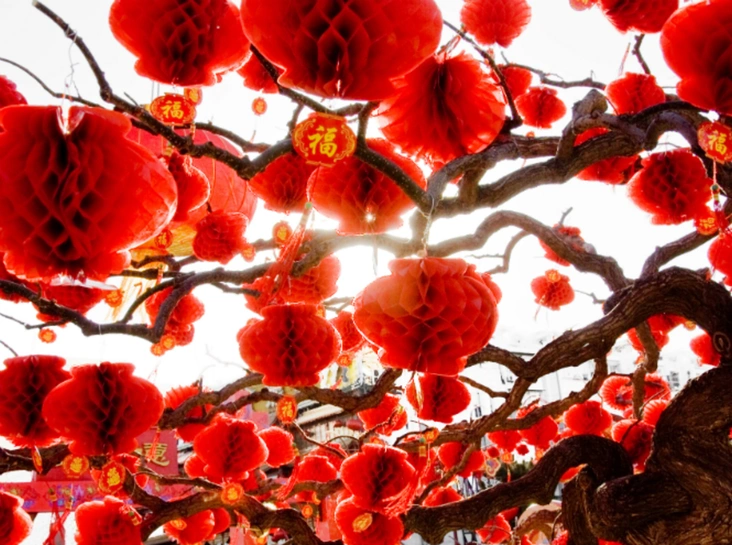Красный цвет в Китае — один из самых любимых. Считается, что он приносит удачу, а так как в Китае традиционной новогодней елки не бывает, то красными шарами и фонариками украшают самое обычное дерево, которое в Китае именуют Деревом Света.