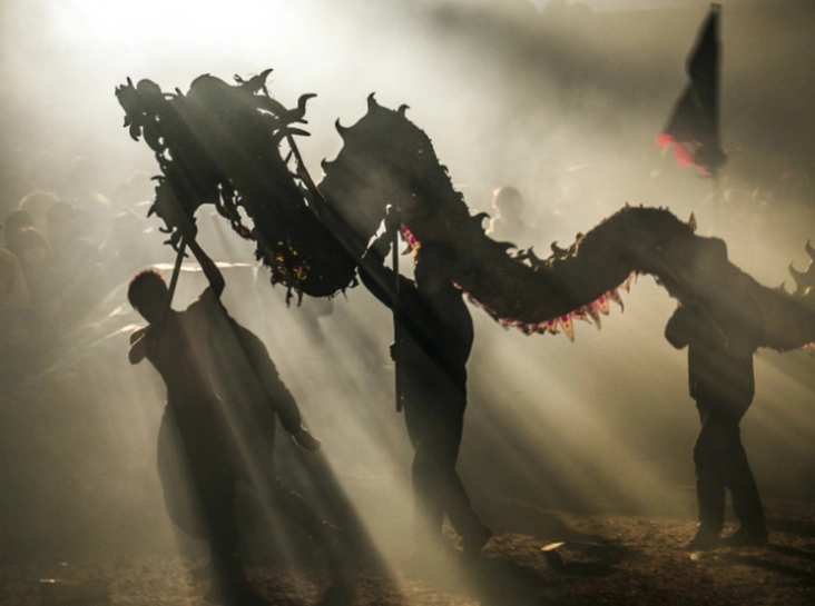 Одно из самых главных мероприятий, которое проходит ежегодно во всех городах и деревнях Китая — танец Дракона. Впервые, судя по исследованиям, танец Дракона появился еще в 12 веке — для китайцев он имеет грандиозное значение, ведь издавна считается, что определённые телодвижения защищают от горя и несчастья в Новом году. Драконов делают из бумаги и проволоки: длинное тело может быть до 10 метров длиной. Сегменты тела дракона сделаны отдельно, к каждому прикреплен шест, которым управляют артисты.