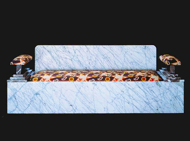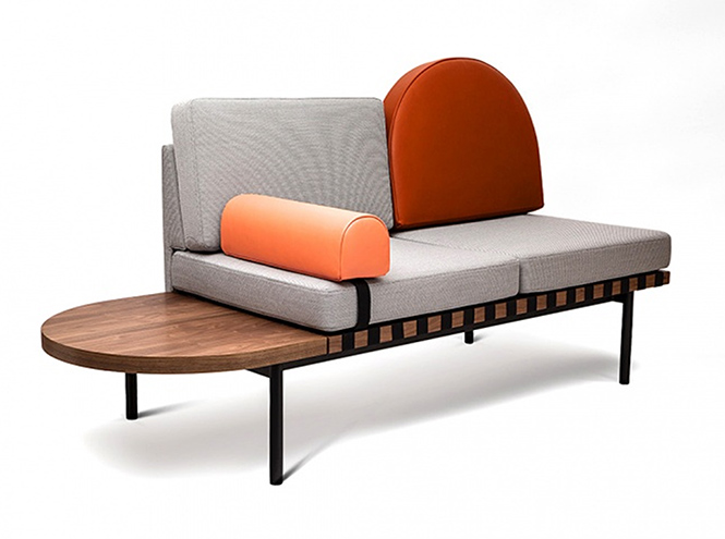 Дизайнеры из французского бюро POOL создали универсальную модель дивана «Grid». На деревянном основании расположены текстильные подушки, которые комбинируются с разноцветными вставками, отличными друг от друга по форме. Такое сочетание форм и текстур — характерная черта стиля мемфис.