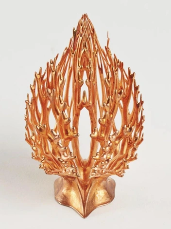 Кирилл Рейв, также экспериментирующий с 3D-принтингом в качестве одного из инструментов, добавляет к этому нейросети. Из сотен созданных искусственным интеллектом изображений художник выбирает единицы и самостоятельно дорабатывает их с помощью компьютерных технологий.
