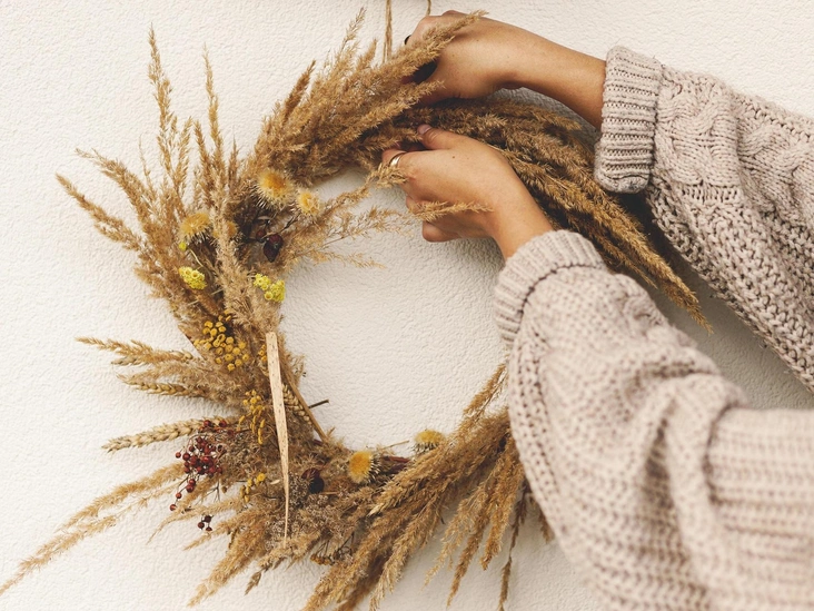 Важно понимать, что гирлянда из сухоцветов уступает в долговечности своей светодиодной коллеге, поэтому постоянно снимать и вешать ее вряд ли получится — скорее всего, она станет разовым декором, так как от частых перемещений рано или поздно начнет осыпаться.