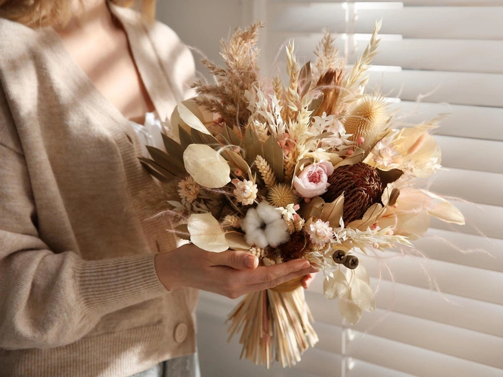 Диана Дудина, партнер сети цветочных студий FMART by flowwow, предлагает взглянуть на стандартные ситуации под нестандартным углом и обратить внимание на сухоцветы — неприхотливые, стойкие и очень необычные. Но главное, ими можно украсить практически все что угодно!