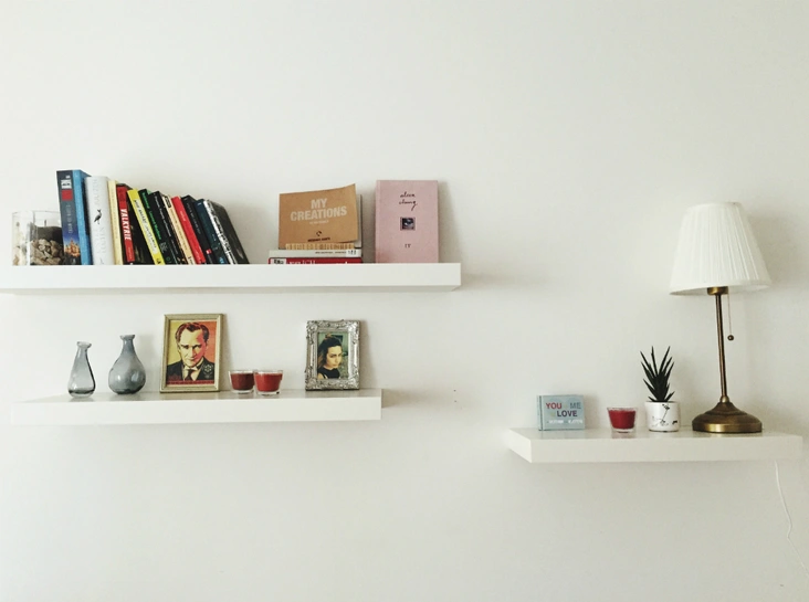 Такое решение создаст дополнительный уют в комнате, а, кроме того, поможет навести порядок и даст больше пространства. Располагать полки можно не только над рабочим столом, но и на стенах спальни, гостиной, кухни и столовой, а несколько полок, размещенных рядом, создадут иллюзию небольшой домашней библиотеки (читайте также: Здесь живут книги: как красиво оформить домашнюю библиотеку).