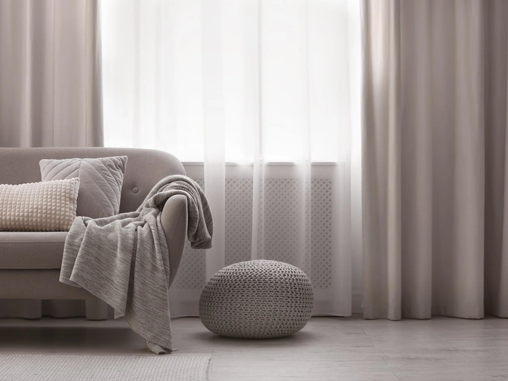 Шторы — многоуровневые, сложные, тяжелые — долой. Замените их на льняные, хлопковые занавески или тюль, которые придадут вашему интерьеру легкости и света. Также можно рассмотреть шторы блэкаут, если окна выходят на солнечную сторону, рулонные и римские шторы — такие варианты будут смотреться актуально и при этом нести в себе важную функцию (читайте также: Как выбрать идеальные шторы: советы дизайнера).