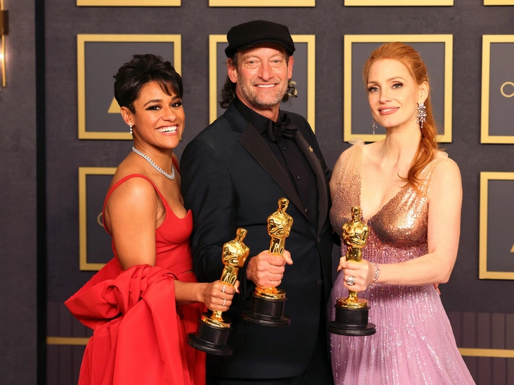 В номинации на «Лучший фильм» было представлено рекордно большое количество лент — целых 10. В их числе «Власть пса», «Дюна», «Вестсайдская история», «Белфаст» и другие, но в итоге победа досталась комедийно-драматической картине «CODA: Ребенок глухих родителей». Победу в номинации «Лучшая актриса» получила Джессика Честейн (фильм «Глаза Тэмми Фэй»), а в номинации «Лучший актер» победил Уилл Смит (фильм «Король Ричард»). К слову, актер получил свою «минуту славы» не только во время вручения статуэтки — из-за неудачной шутки Криса Рока о прическе Джады Пинкетт-Смит Уилл Смит не сдержался и ударил ведущего прямо на сцене. К счастью, скандал удалось разрешить мирным путем.