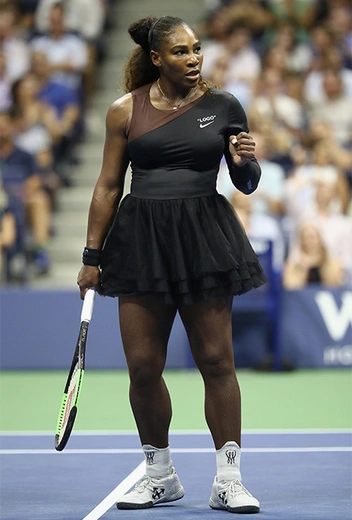 В ответ на это заявление Серена вышла на свою первую игру на US Openв черном спортивном купальнике с асимметричным верхом и тюлевой юбкой. Наряд этот больше подошел бы балерине или художественной гимнастке. Поклонники расценили это как твердое намерение теннисистки появляться на корте в той одежде, в которой она хочет. Сама же Уильямс на выпады организаторов отреагировала просто, сообщив, что и сама не наденет комбинезон повторно, поскольку не намерена «повторяться в моде».