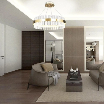 В гостиной я советую использовать нейтральный свет, потому что в данной зоне нет необходимости уснуть. И именно в этом помещении я бы использовала потолочный свет — как центральный акцент.