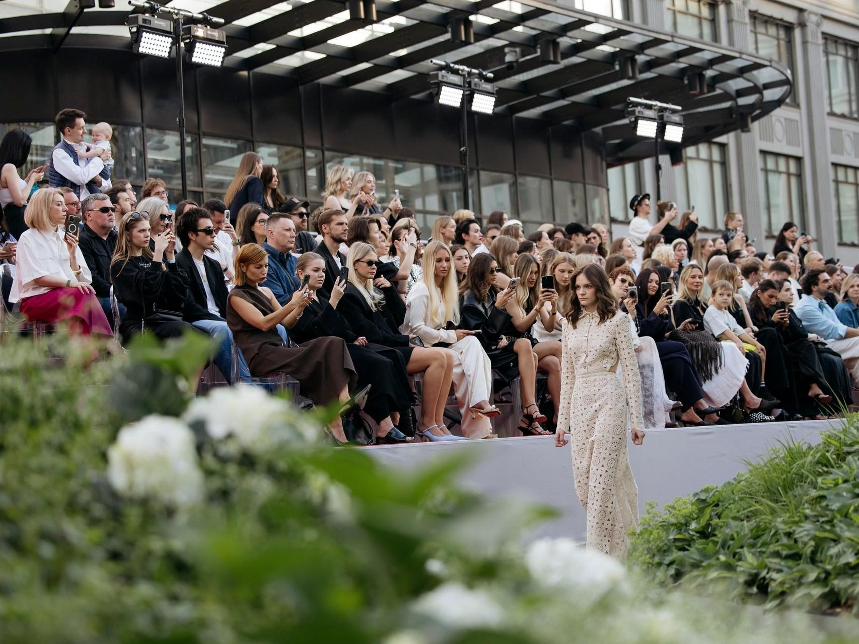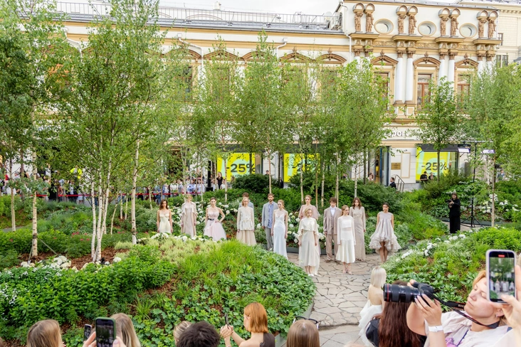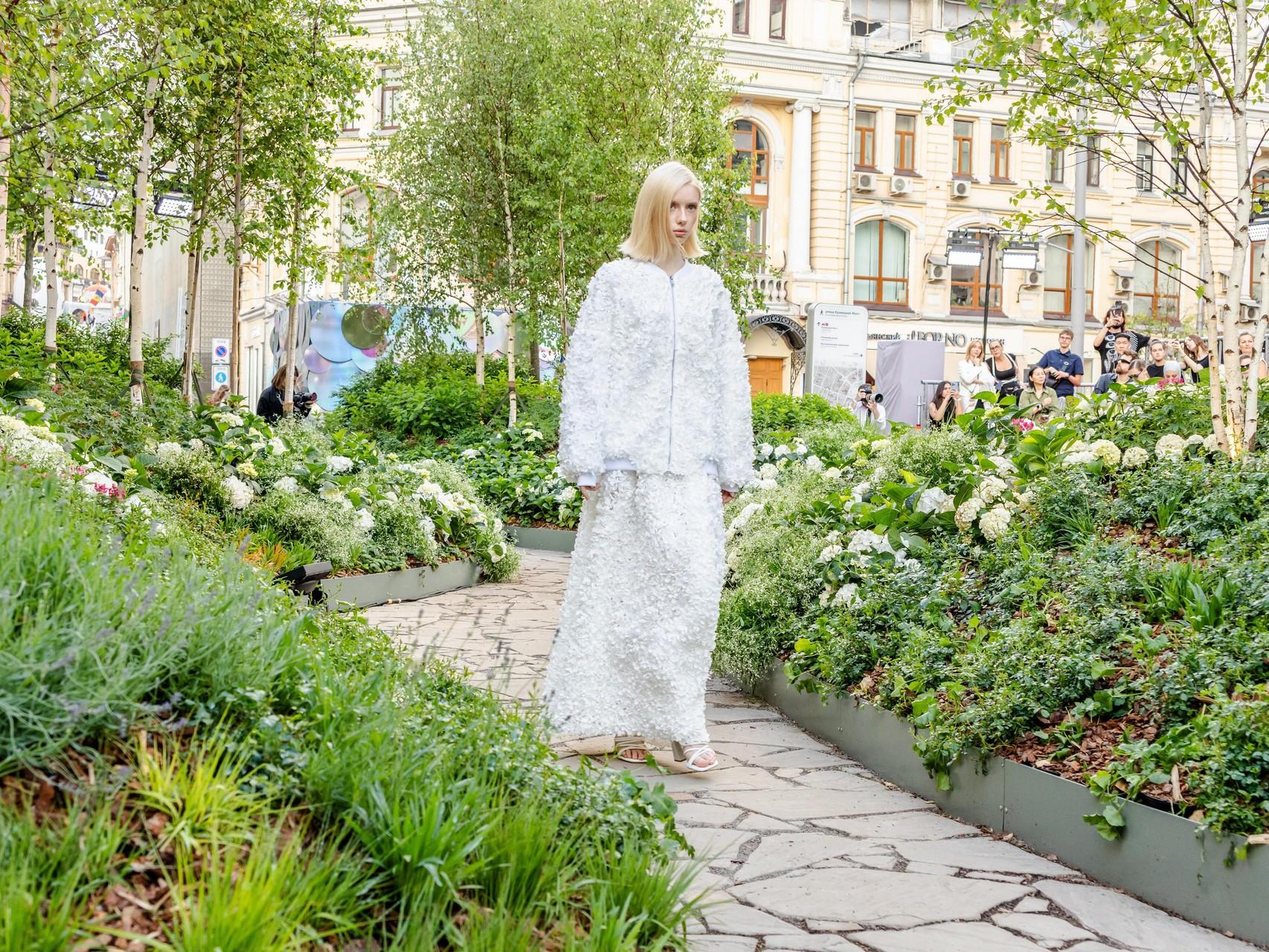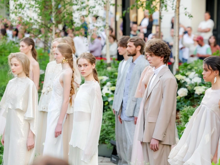 Зрители оценили изящные женственные образы для мужчин и женщин, платья из парящих тканей с цветочным принтом, живыми цветами и утонченными аксессуарами. Интересно, что все образы были гармонично вписаны в городское оформление с живыми зелеными насаждениями, создав цельную и запоминающуюся атмосферу сказочного леса. Среди гостей показа оказались Равшана Куркова, Ирина Старшенбаум, Мария Миногарова, певец Хвича, известные fashion-инфлюенсеры, стилисты и дизайнеры.