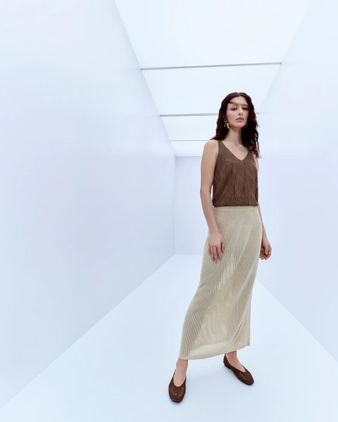 Это история о противоположностях, которые живут в гармонии: металлизированный блеск сочетается с матовой глубиной фактур, четкая геометрия — с пластикой движения, плотные формы — с мягкостью прикосновения. Здесь нет единственного определения женственности — она многолика, как и каждая героиня WITHOUT FAIL. Цветовая палитра построена на тонких нюансах и сложных полутонах: сапфирово-зеленый, песочный, бронзовый и молочный создают атмосферу сдержанной чувственности и внутренней уверенности. Каждый образ — не просто наряд, а короткий фильм о любви к себе.