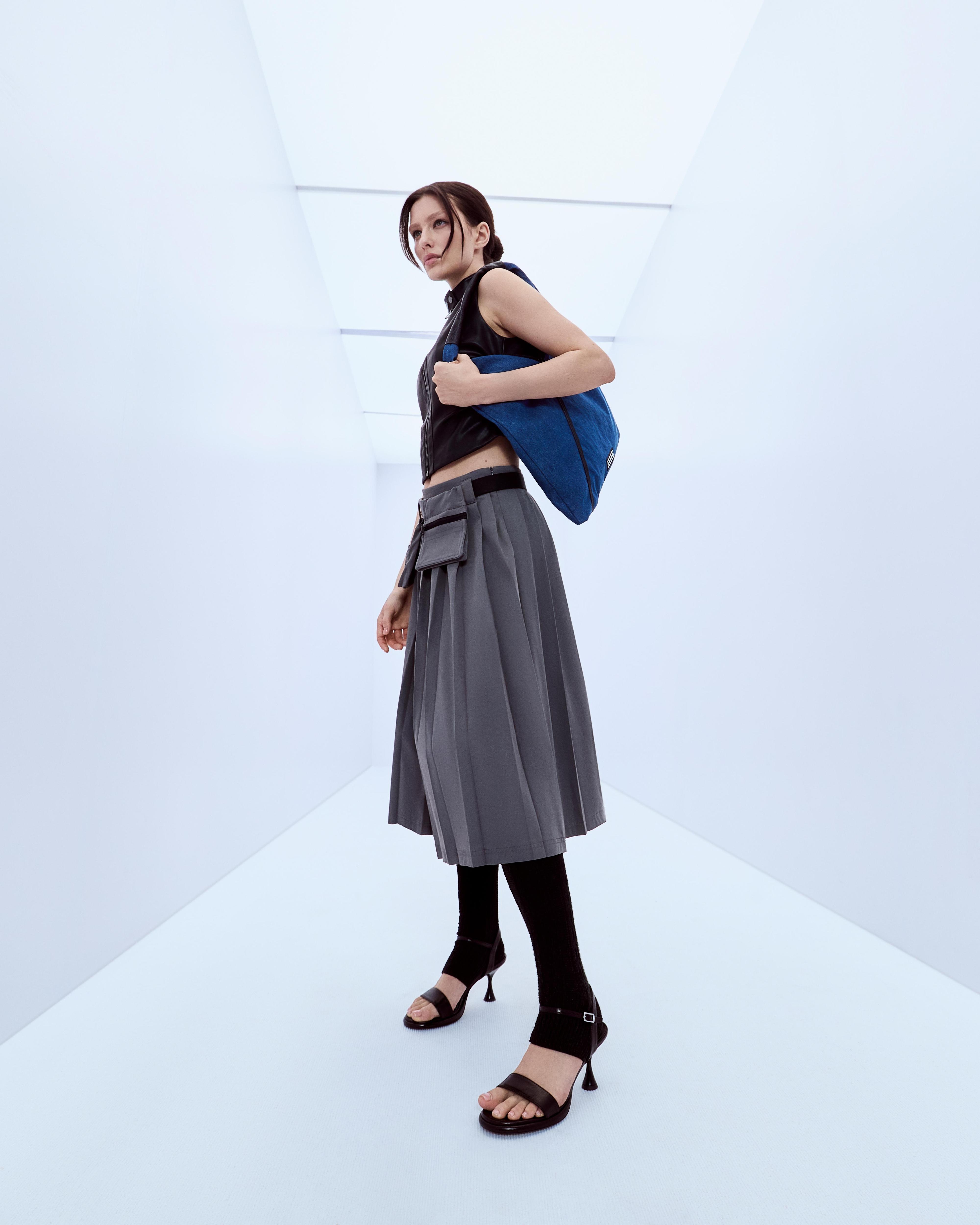 В NO ONE анонсировали новую рекламную кампанию Anna Rachele. Она вдохновлена эстетикой минималистичного техно-нуара. Действие разворачивается в стерильном белом коридоре — это метафора чистого листа, открытого для творчества. Холодный блеск металлизированной кожи, объемные формы и фактура сетчатых тканей в обуви и аксессуарах эффектно противопоставлены безупречной белизне фона.