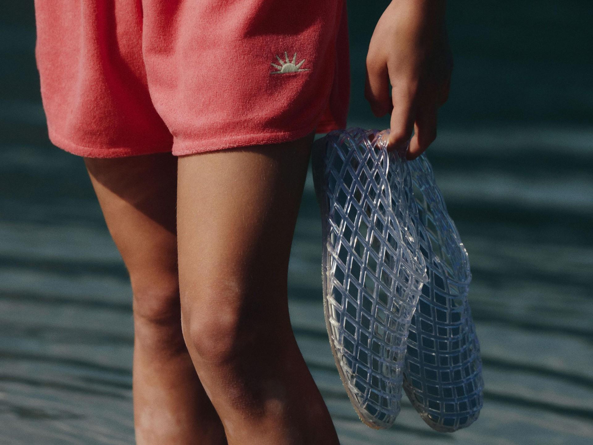 Новинки для мальчиков — рубашки с контрастными воротниками, махровые комплекты с вышивкой, шорты с контрастными принтами, футболки с надписями, лаконичные панамы. Также в коллекции представлена обувь: полупрозрачные туфли из сетки, сандалии из замши и поливинила. Цветовая палитра капсулы — по-настоящему летняя. В ней сочетаются голубой, розовый, синий, зеленый и белый