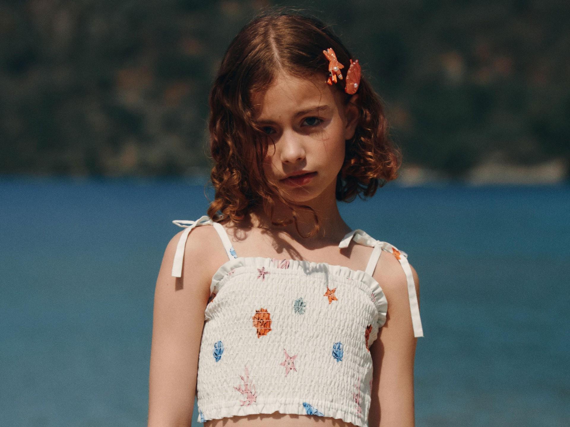 LIMÉ запустил летнюю круизную коллекцию для детей LIMÉ Kids Surf Camp. Съемка бренда переносит на морское побережье — в атмосферу серф-клуба. Герои демонстрируют яркие новинки для девочек и мальчиков 3-6 и 7-14 лет. Изделия выполнены из натуральных тканей: лиоцелла и хлопка. В центре внимания для девочек: махровые костюмы с акцентными деталями из кроше, укороченные топы и юбки с рисунком в морской тематике, платья и кардиганы ажурной вязки, сарафаны с ярусным верхом и комплекты из муслина. Стилисты LIMÉ предлагают дополнять образы заколками в форме ракушек, акцентными серьгами и ожерельями, напоминающими морские звезды.
