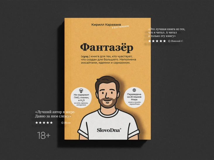 Если настроение падает вместе с листьями, самое время добавить немного самоиронии. Автор проекта SlovoDna (с миллионной аудиторией, если что) и приложения SDay Кирилл Караваев выпускает новую книгу — «Фантазёр». Это не мотивационка, а скорее анти-мотивация с чувством юмора, философией и легким безумием.