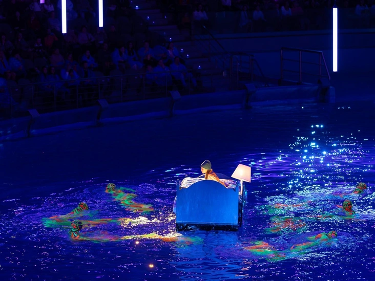Это масштабная постановка, объединяющая современные технологии, живое искусство и участие морских млекопитающих. В центре сюжета — девочка Акулина, которая в канун дня рождения отправляется в волшебное путешествие по океану, чтобы исполнить свою мечту и подружиться с дельфинами. На сцене зрителей ждут совершенно разные артисты: воздушные гимнасты, танцоры, синхронисты и кукольники. Все действие сопровождают 3D-проекции, лазерные инсталляции и сменяющиеся декорации, создавая эффект превращение пространства в подводный мир.