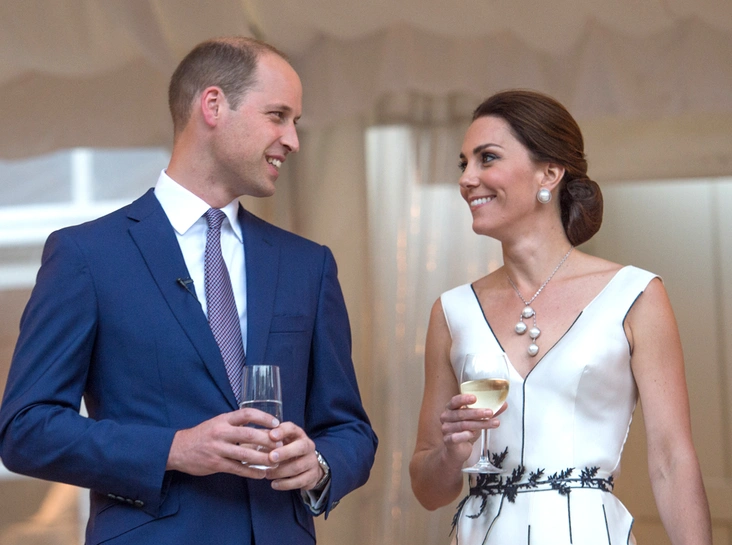 Вечером герцог и герцогиня Кембриджские – без детей – были приглашены на торжественный прием в честь Дня рождения королевы Елизаветы, организованный британским послом в городском парке Лазенки, бывшей резиденции последнего короля страны Станислава. Для мероприятия Кейт подобрала вновь-таки белоснежное платье, но уже от польского дизайнера Gosia Baczyńska, декорированное графичными черными линиями и элементами в виде листьев на талии. Однако, пожалуй, самой оригинальной (и неоднозначной) частью наряда стал довольно экспрессивный лиф – пользователи Интернета уже подметили, что такому декольте позавидовала бы сама Мадонна.